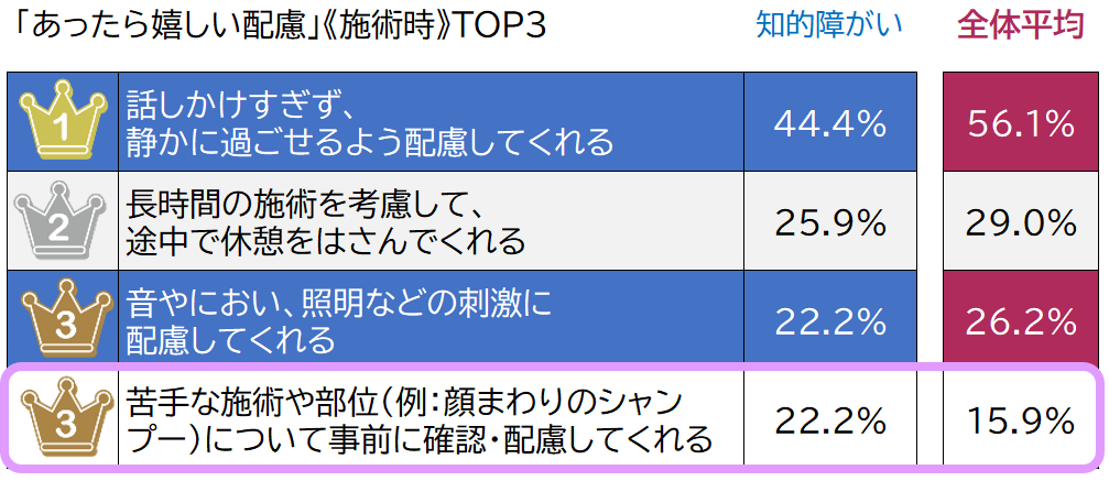 3位にランクインした「苦手な施術や部位について事前に確認・配慮してくれる」(22.2%)については、