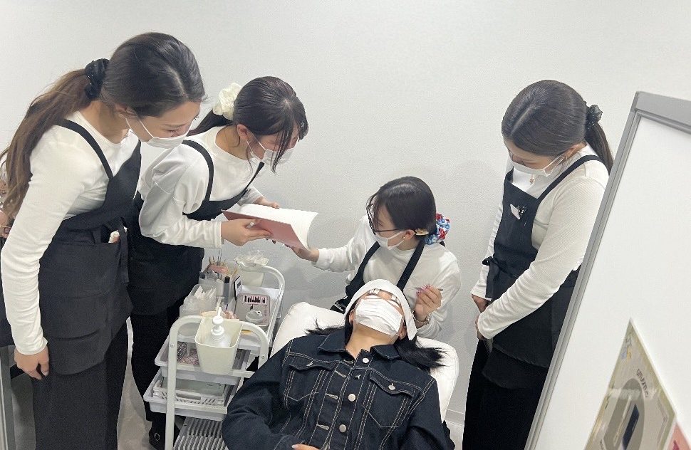 コロナ禍で「まつげパーマ」が流行しましたが、再び「まつげエクステ」ブームが来る可能性もある。ひとつの技術しかできないと、スタッフの将来を考えたときにリスクがあるため、研修ではまつげパーマ・まつげエクステ・アイブロウと全メニューに対応できるアイデザイナーを育成しています。