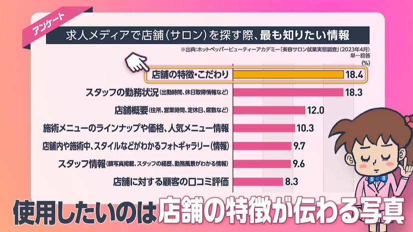 HOT PEPEER Beauty WORKで求人を探す求職者は、検索結果に表示された情報を比較し、気になったサロンを選択するのですが、応募効果アップには、この「検索結果から選ばれる」ことが重要!